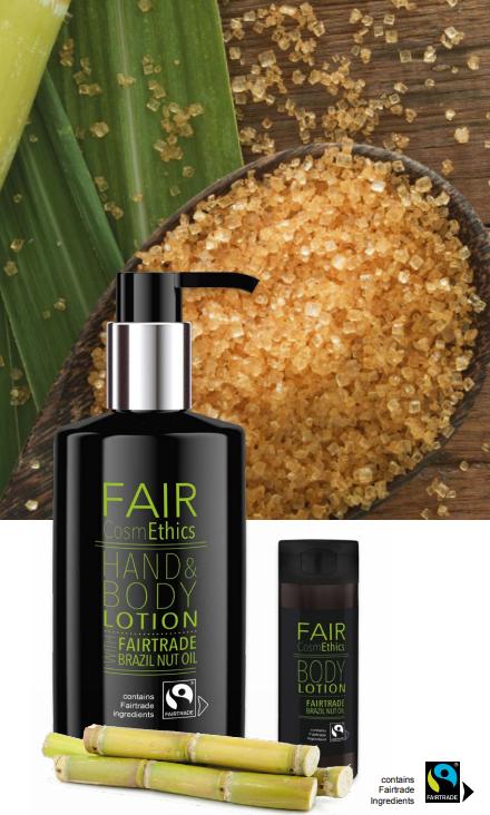 Fairtrade gecertificeerde ingrediënten als rietsuiker, paranotenolie, en olijfolie.